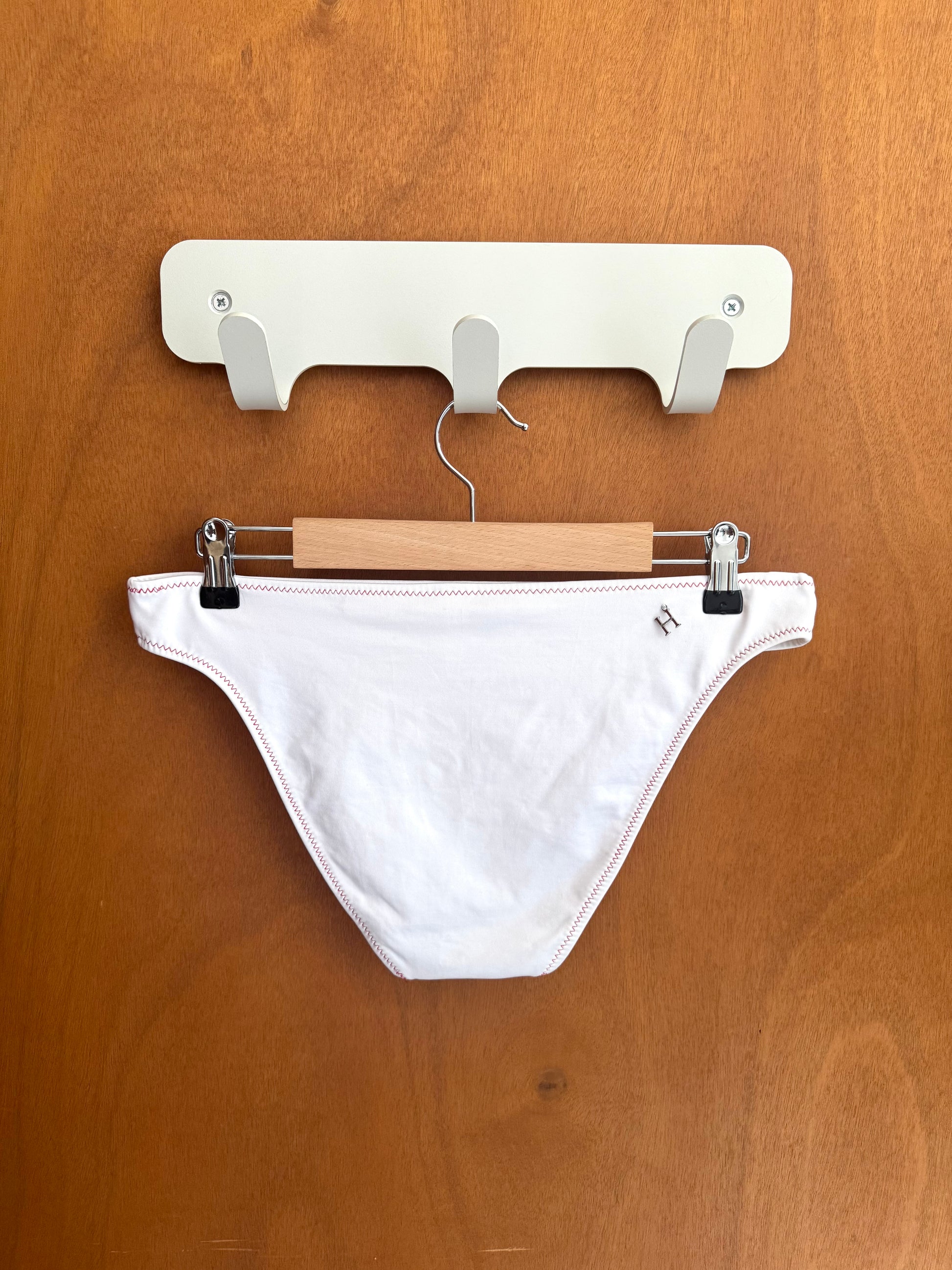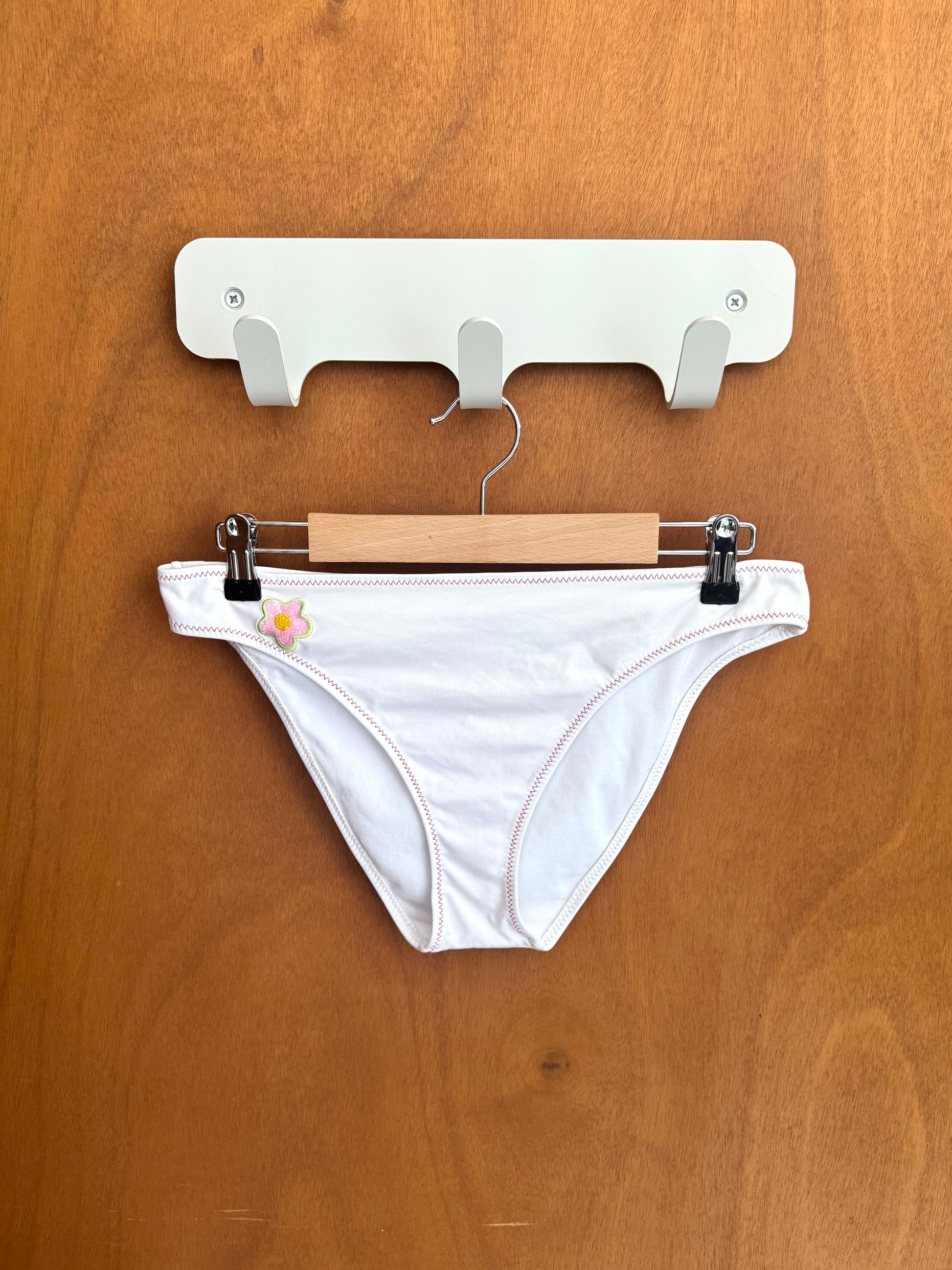White bikini with colored flower patches. Top fits size S. Bottoms EU 42.