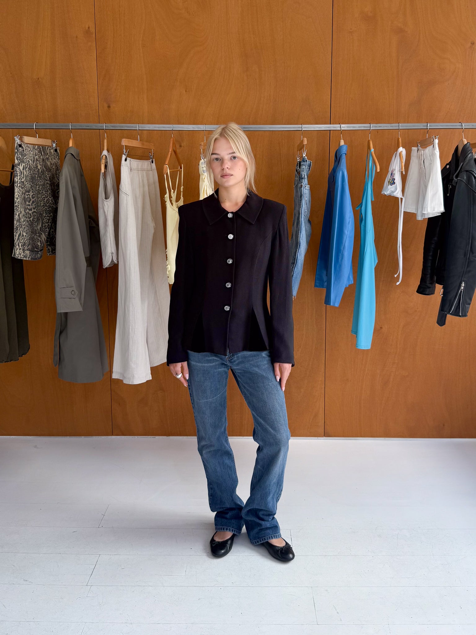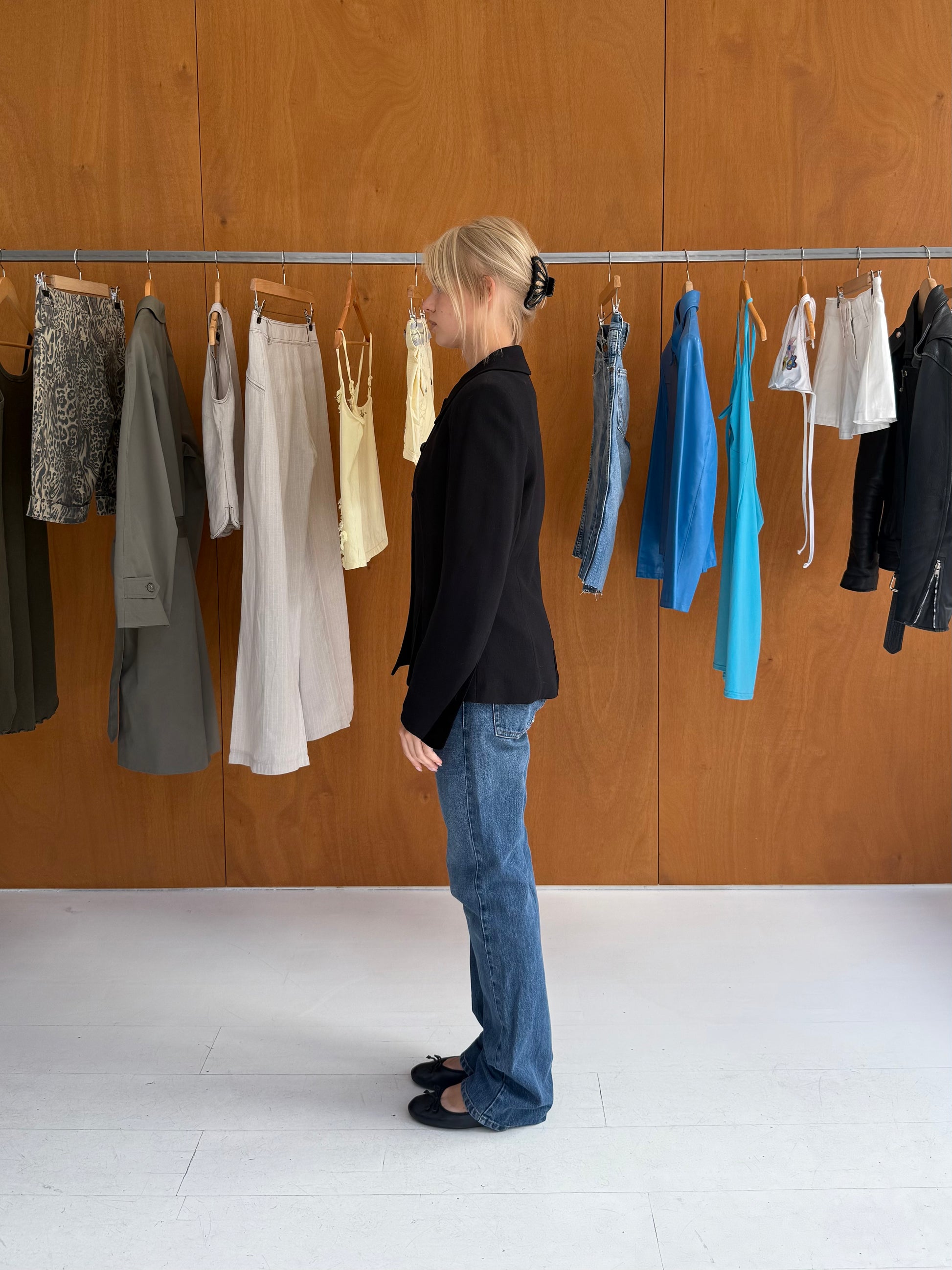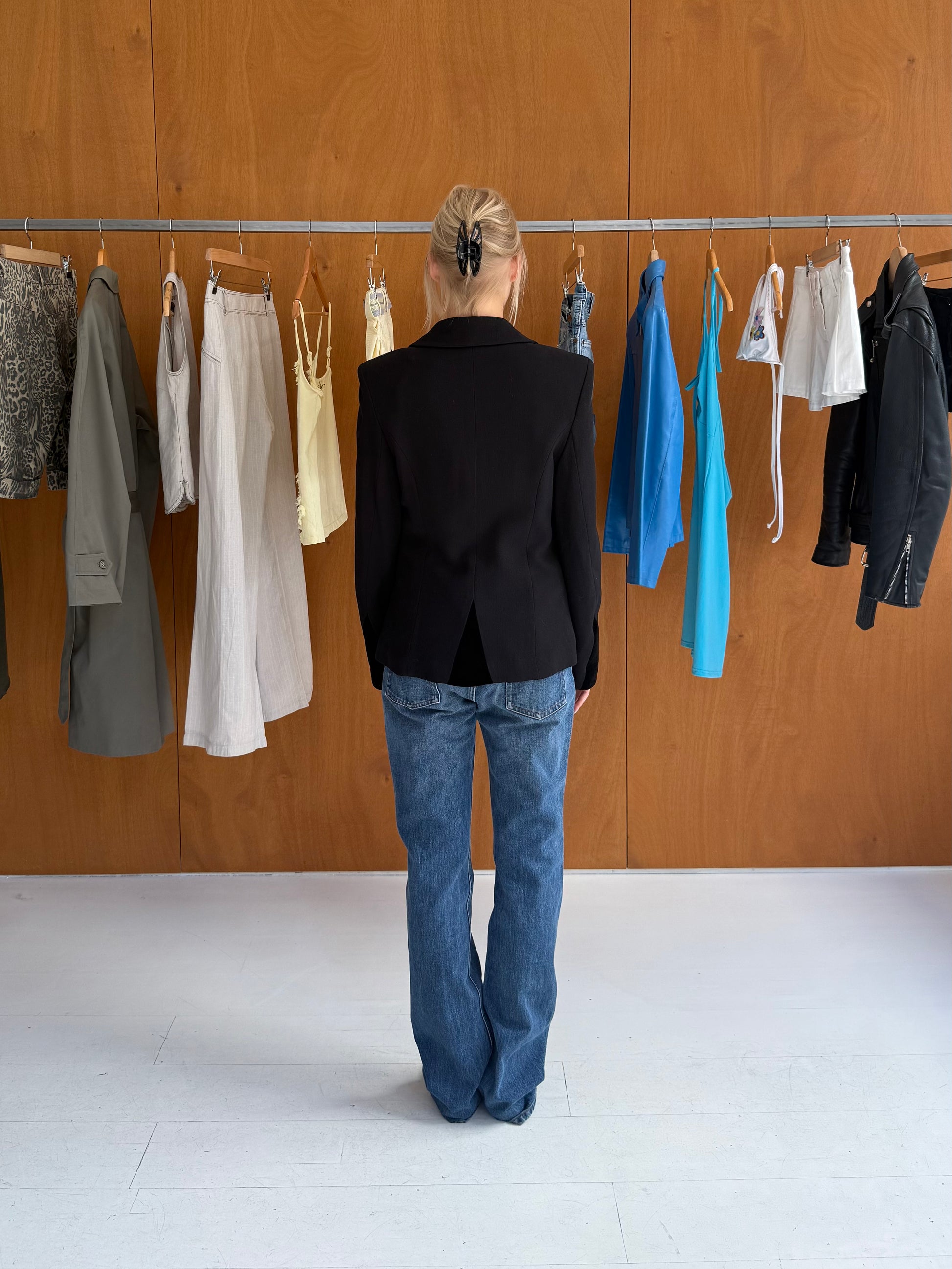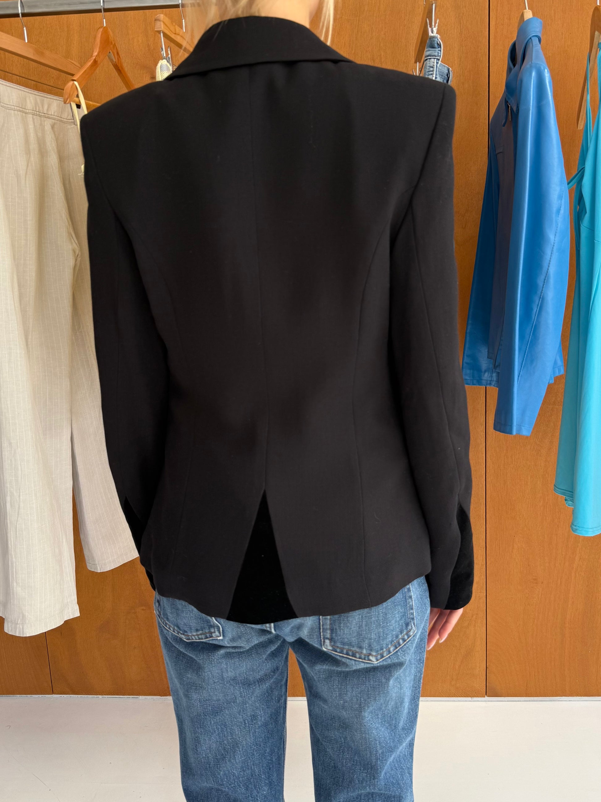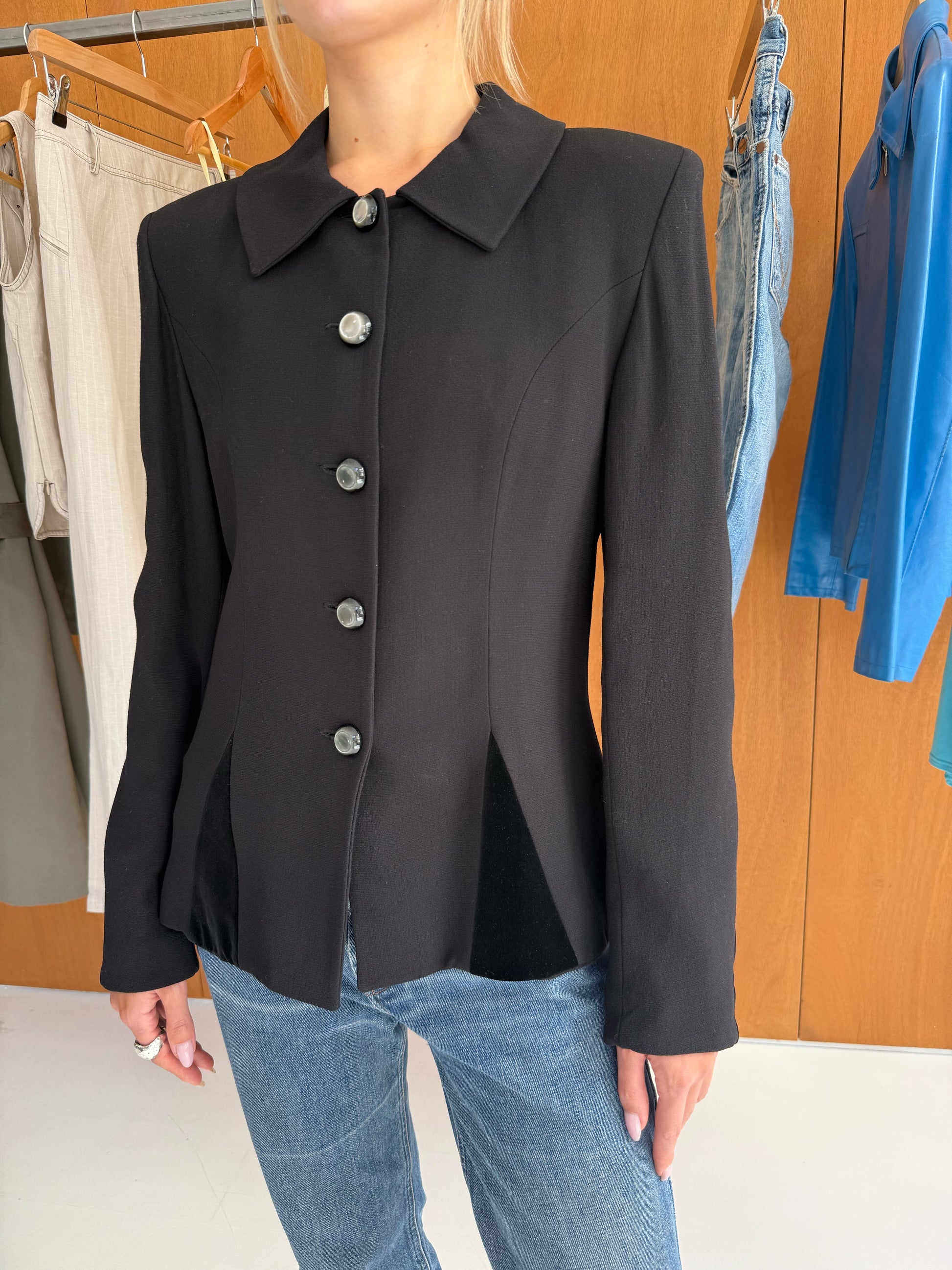 Blazer jacket with velvet detail in black. Fits sizes XS-M.