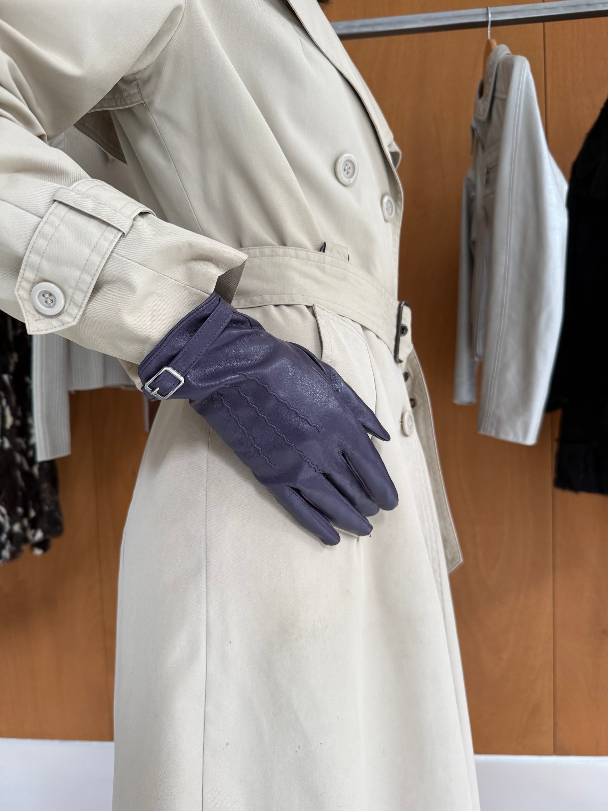 Faux leather gloves in purple. Never worn. Size S. W 9,5cm L 23,5cm.