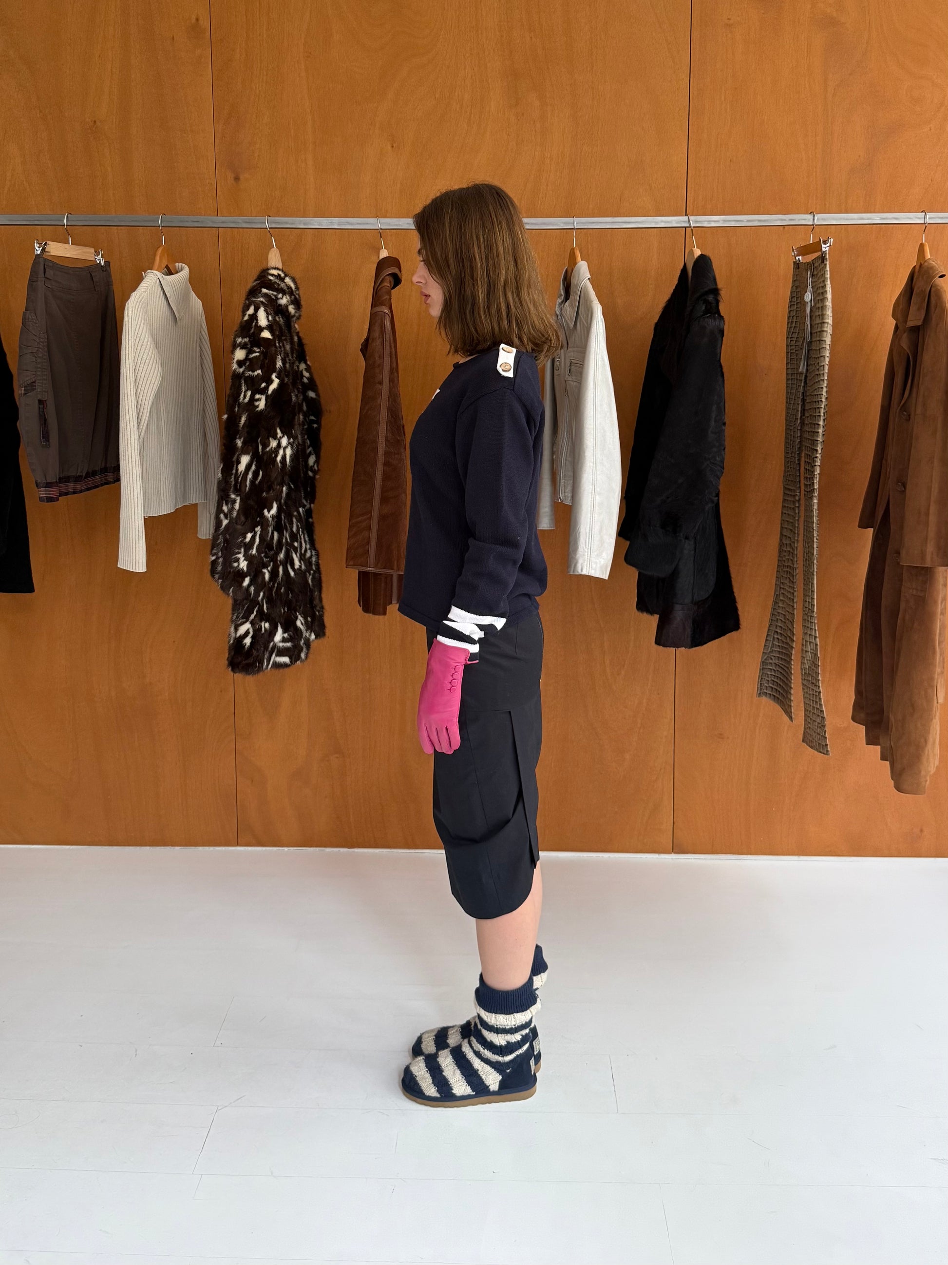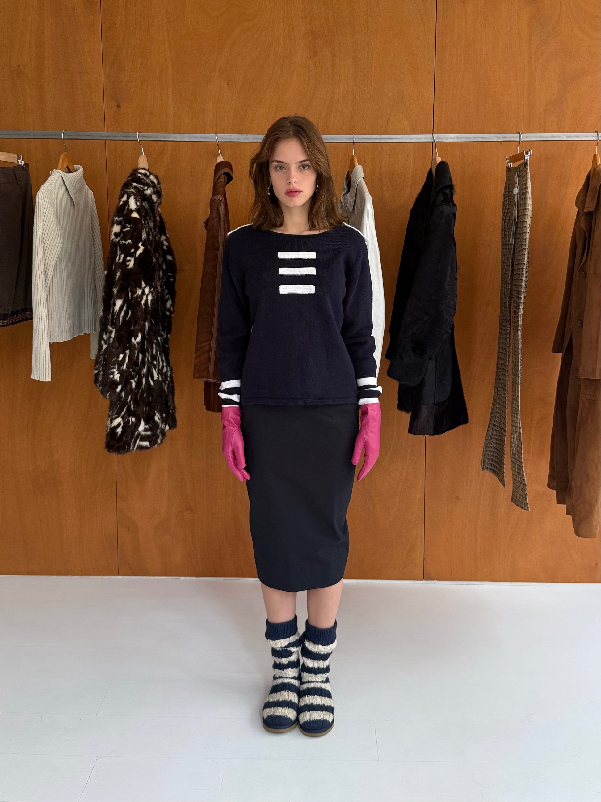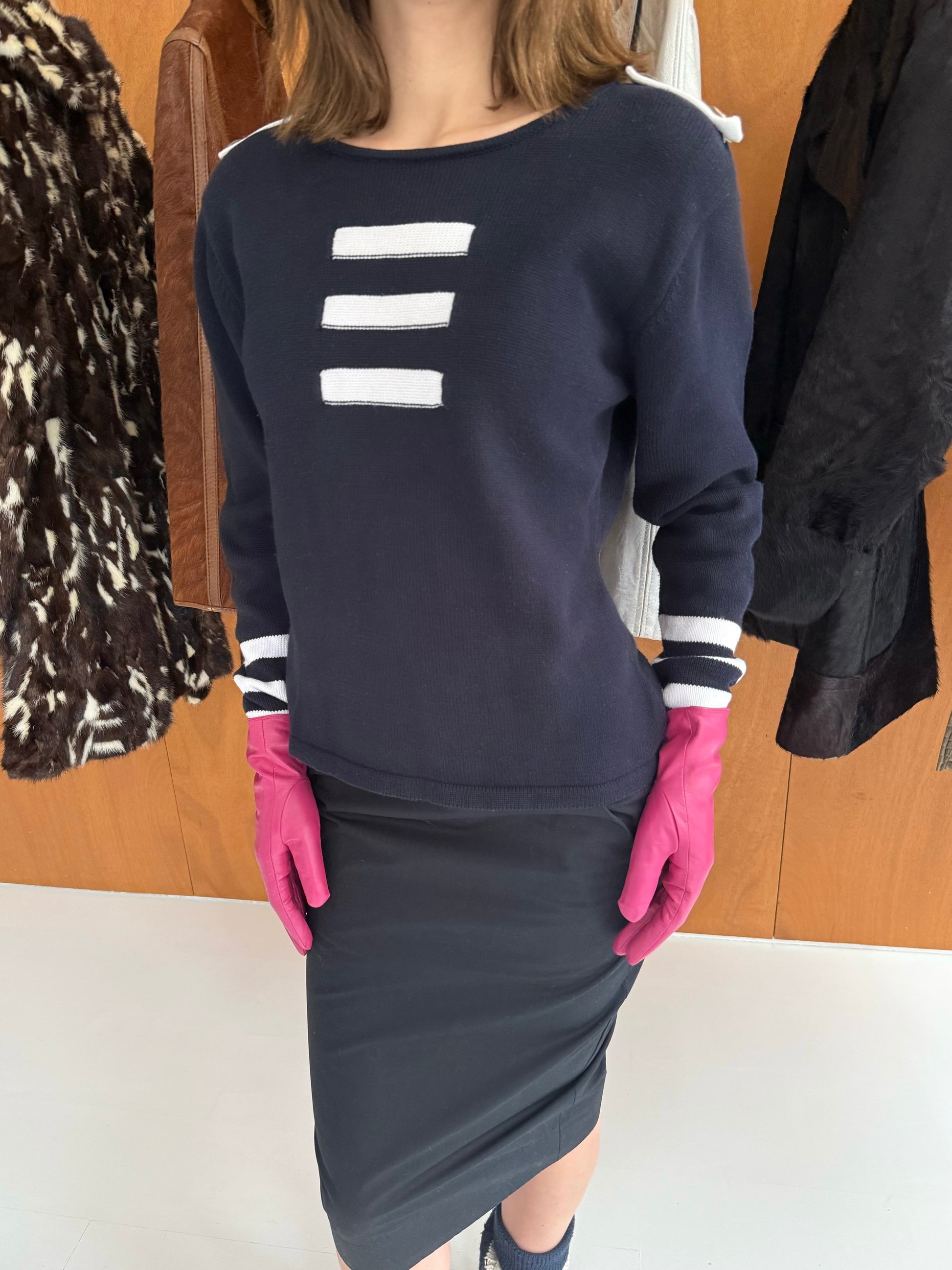 Knitted sweater in dark blue & white. Fits sizes XS-M.