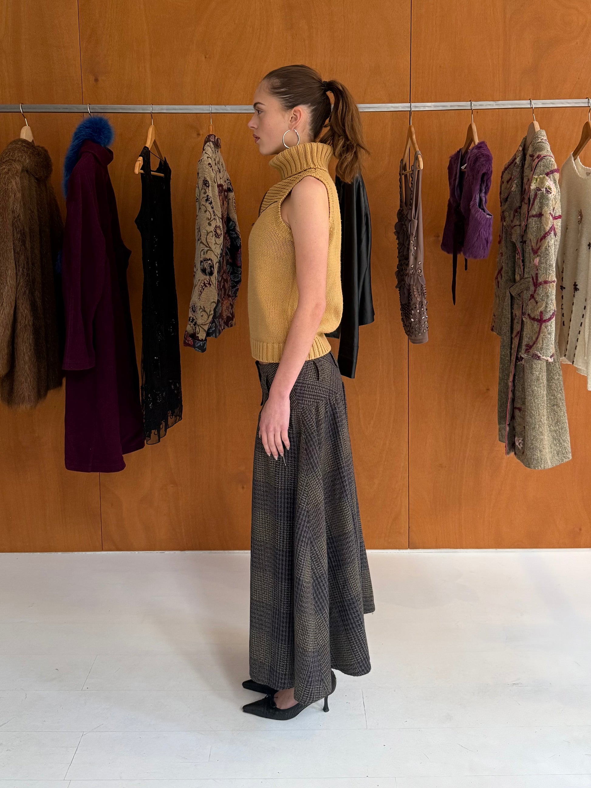 Knitted high neck top with zipper details in camel brown. Fits sizes XS-M.