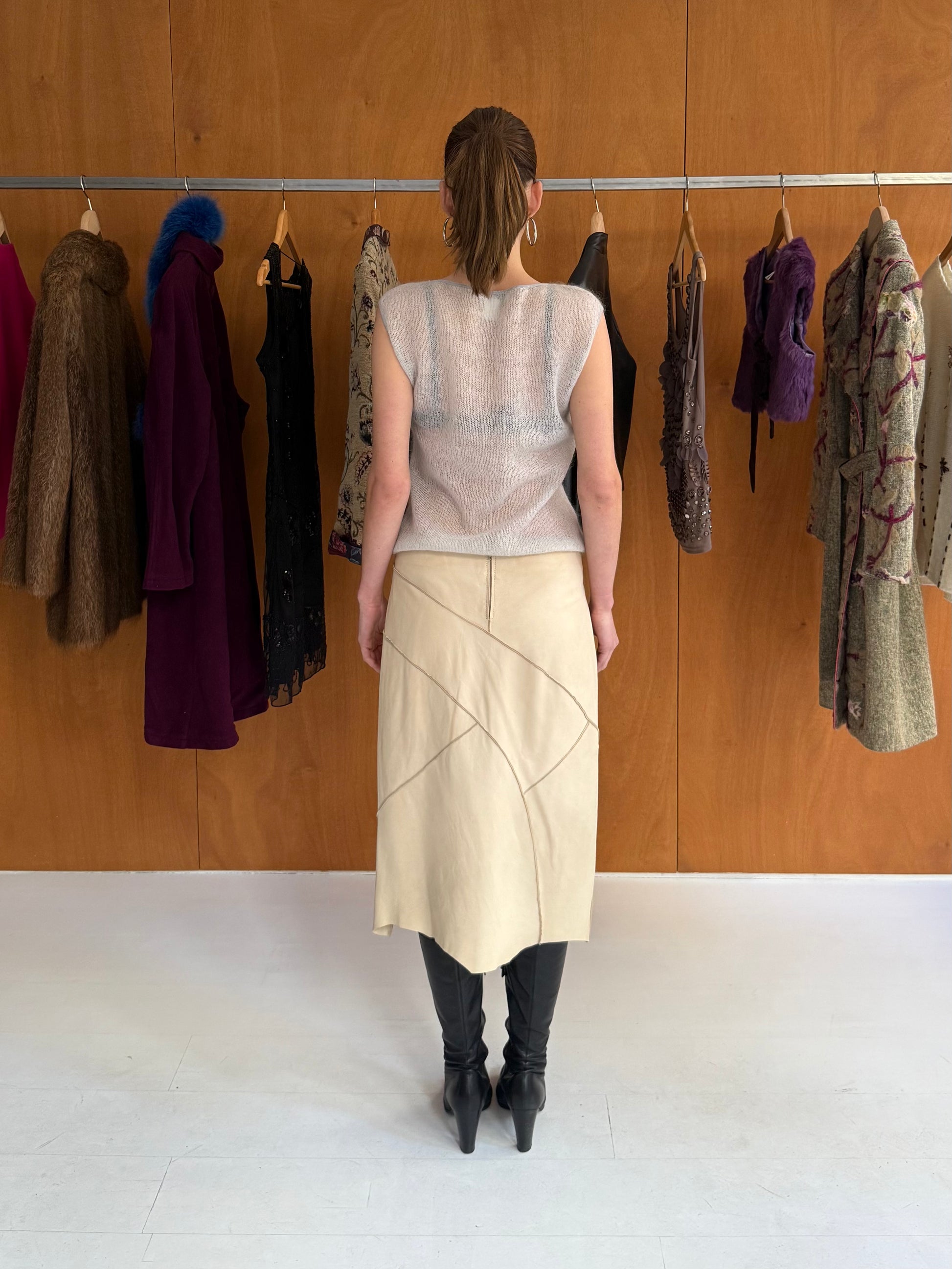 Leather skirt in cream. Fits size M. W 42cm L 67cm.