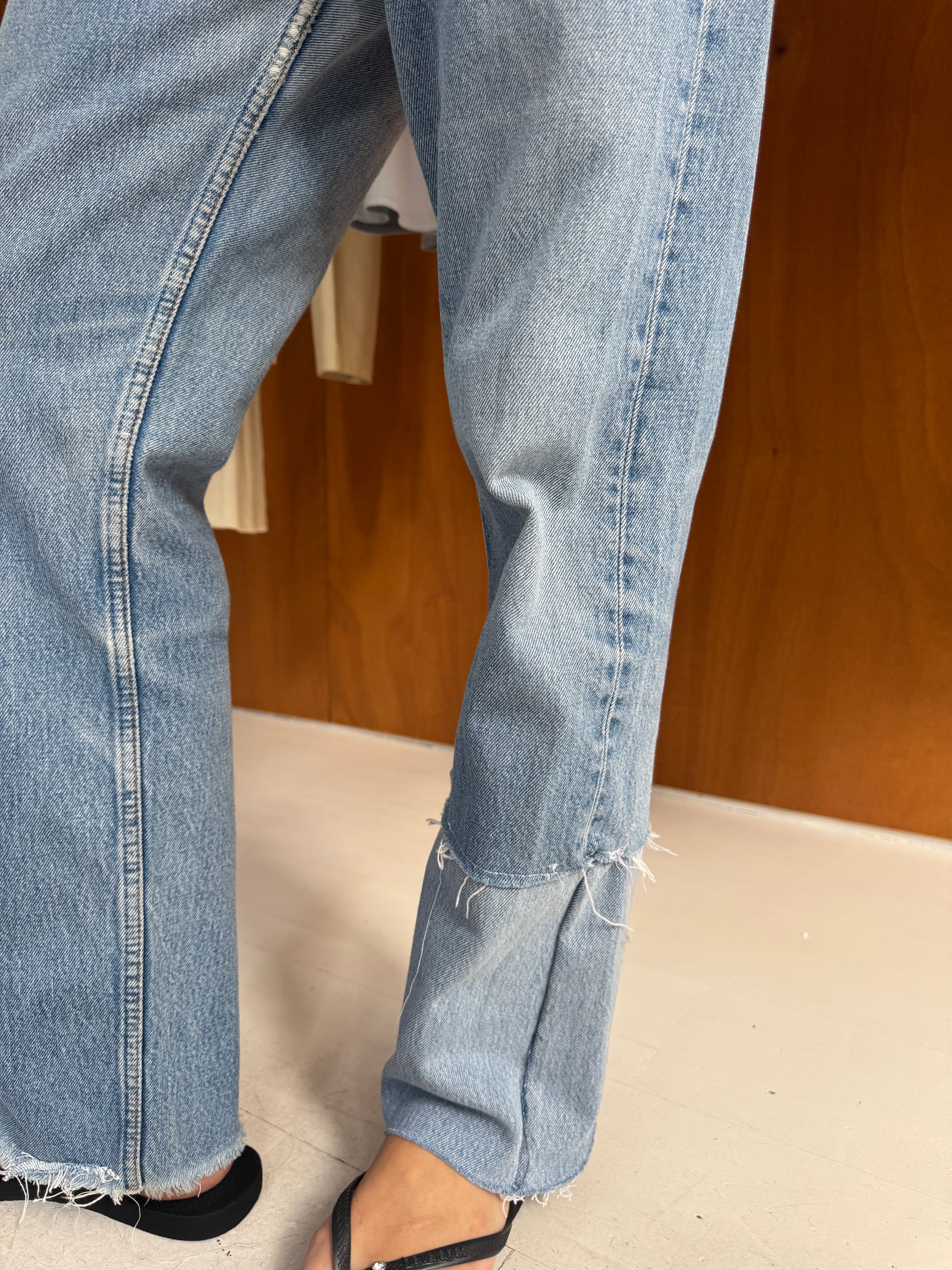 Levi's 501 jeans with stitch detail in blue denim. Fits sizes S-M. W30 L34