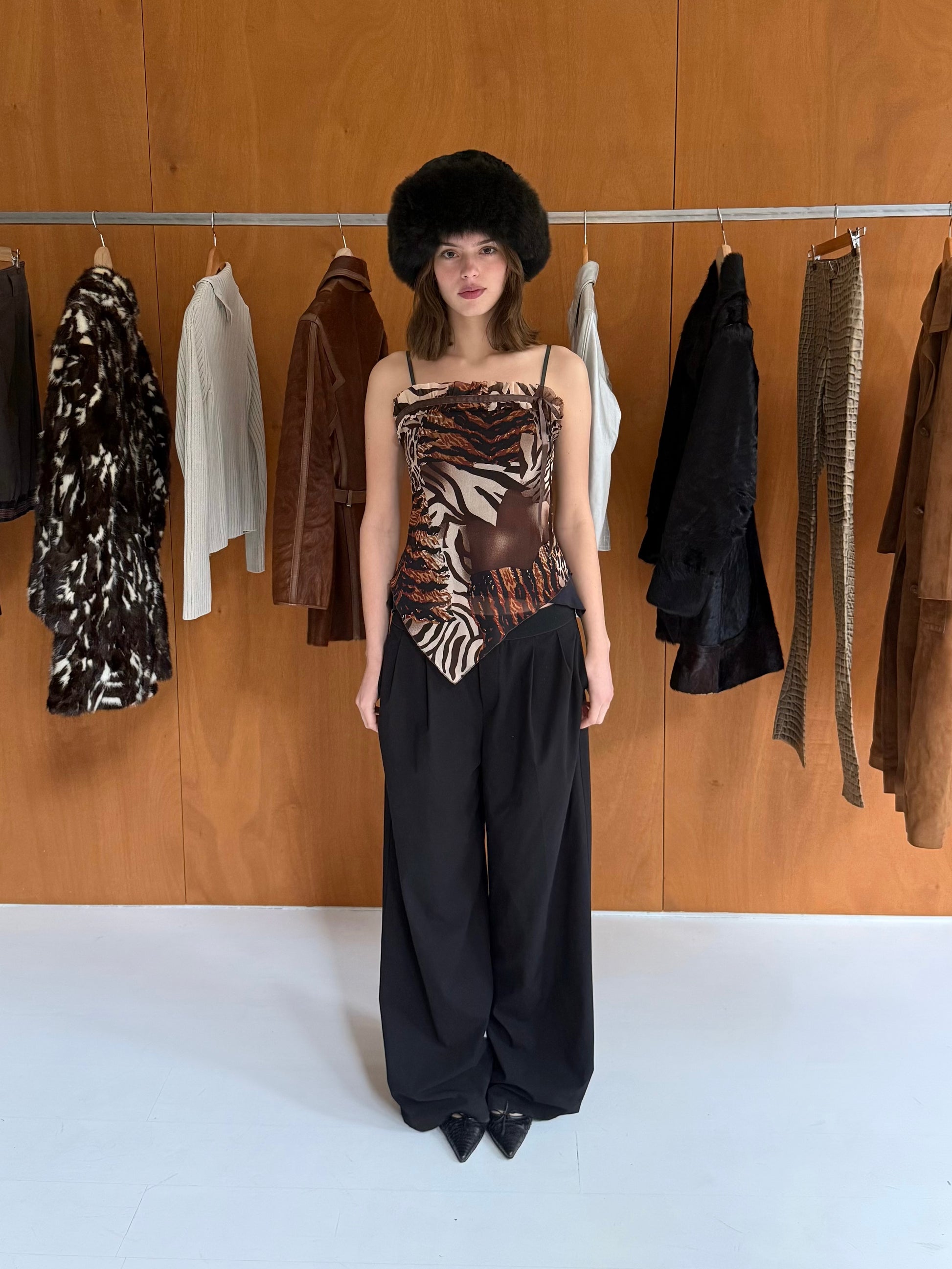 Animal print top in brown. Fits sizes XS-S.