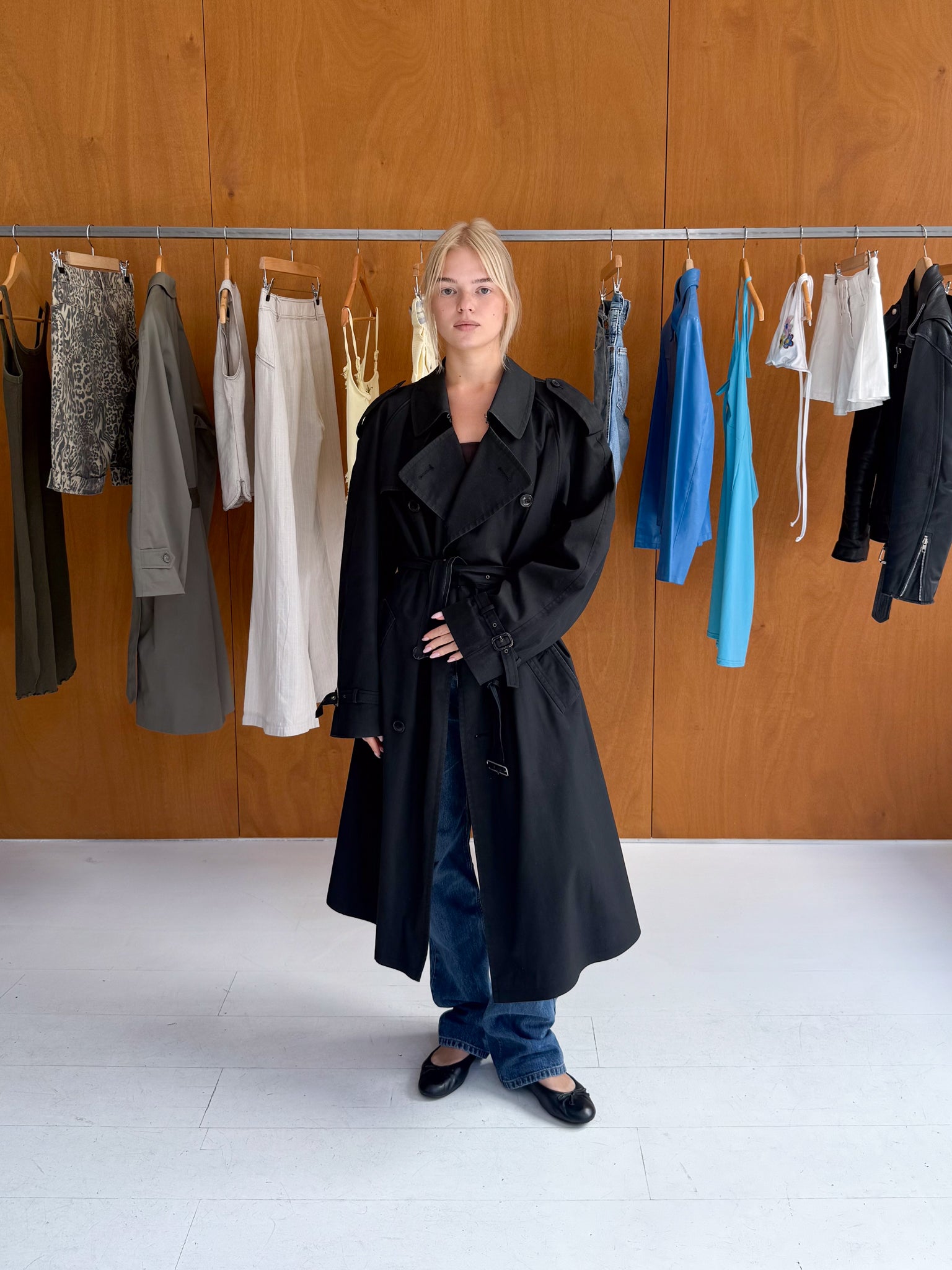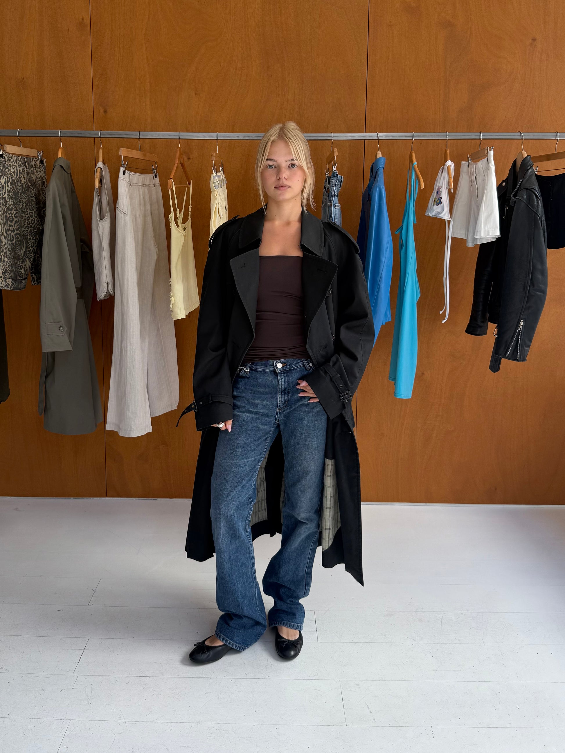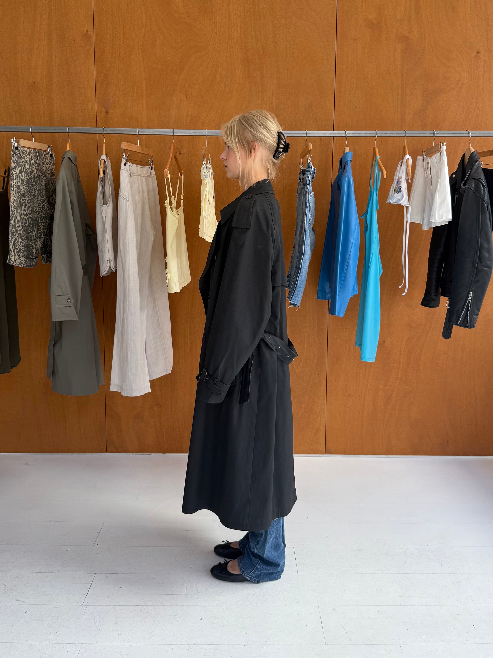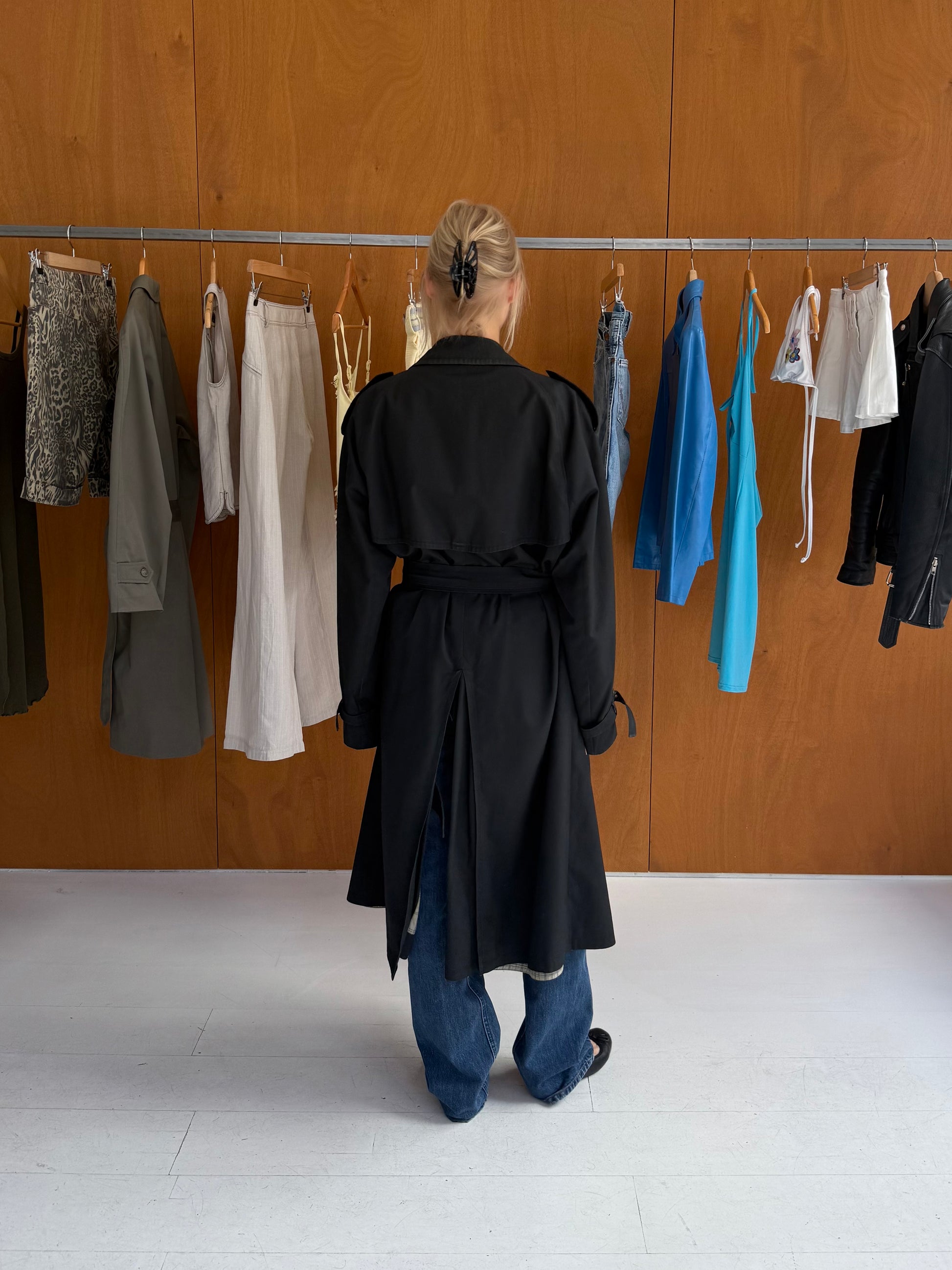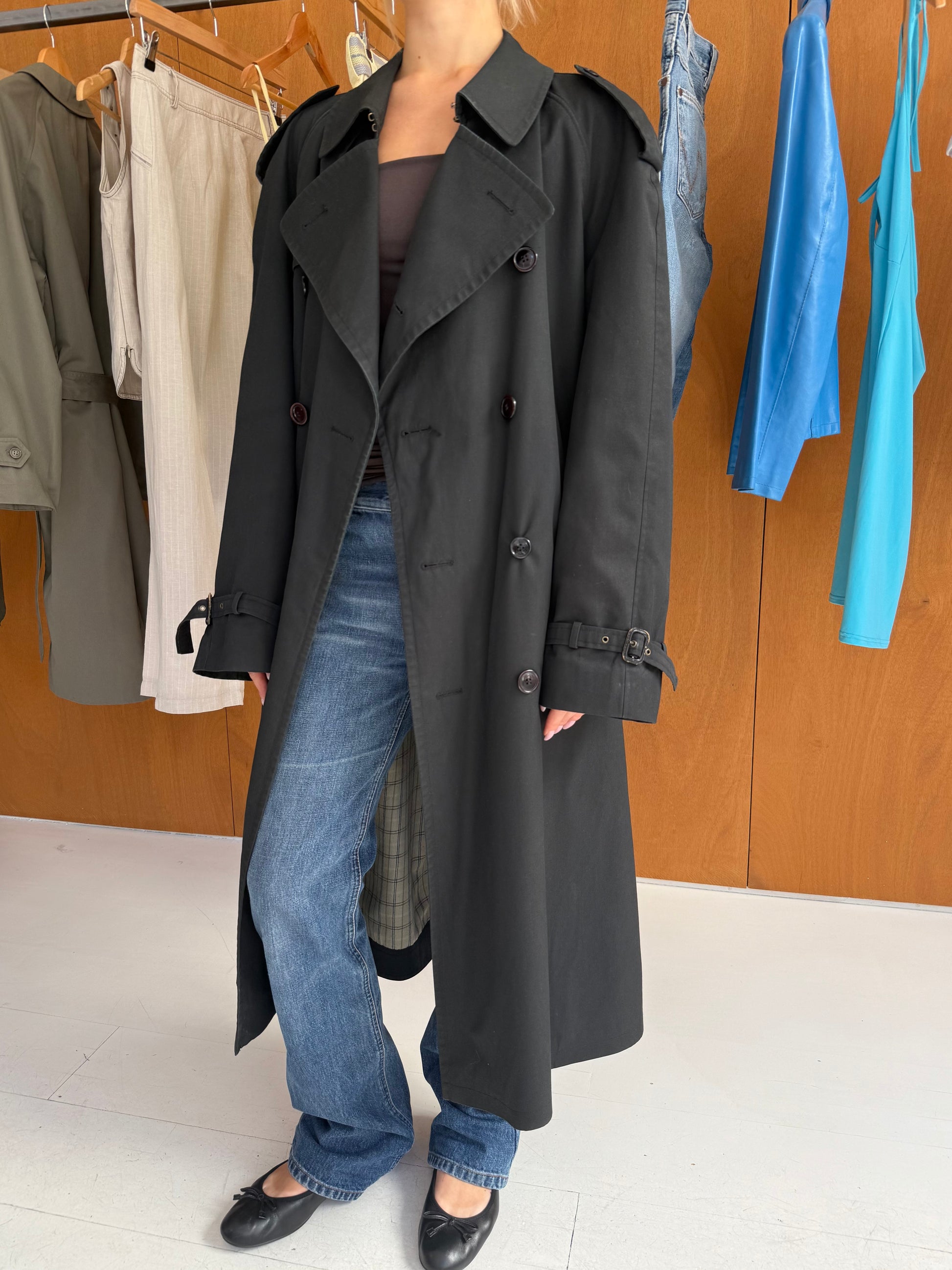 Trenchcoat in black. Fits sizes S-L.