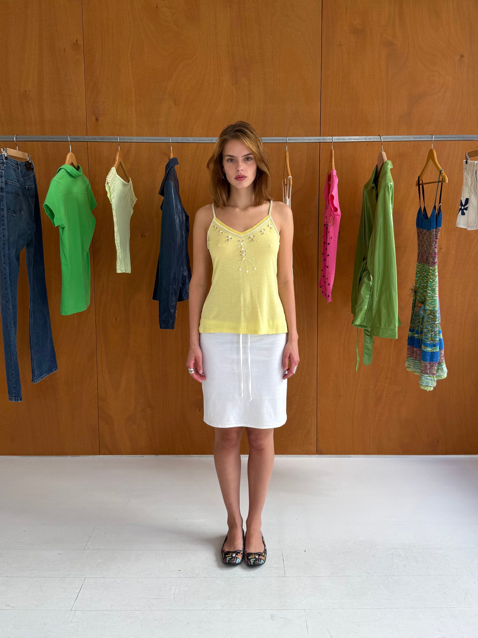 Beaded tanktop in yellow. Fits sizes XS-S.