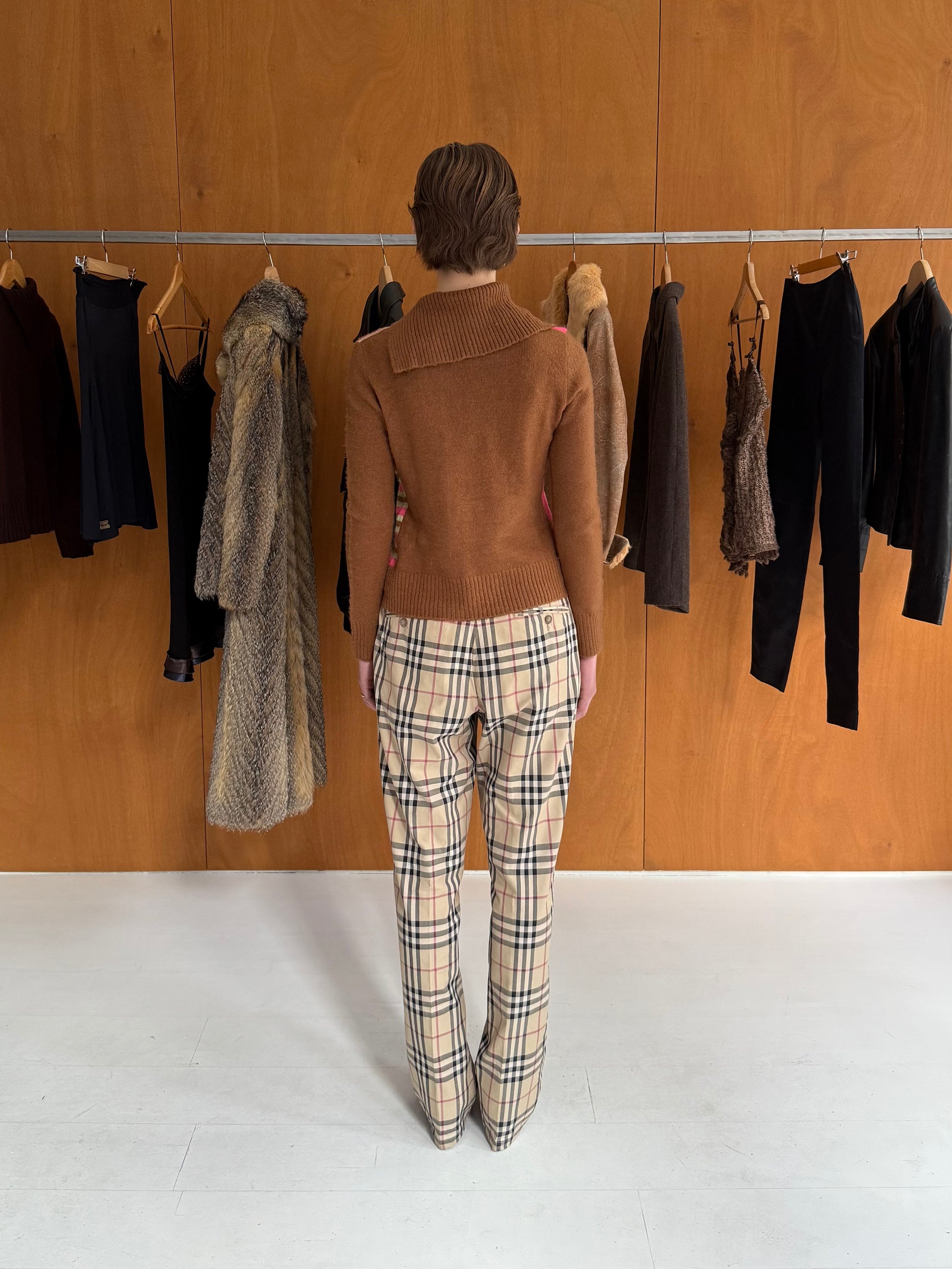 Burberry print pants in beige. Fits size M. W 39cm L 109cm.