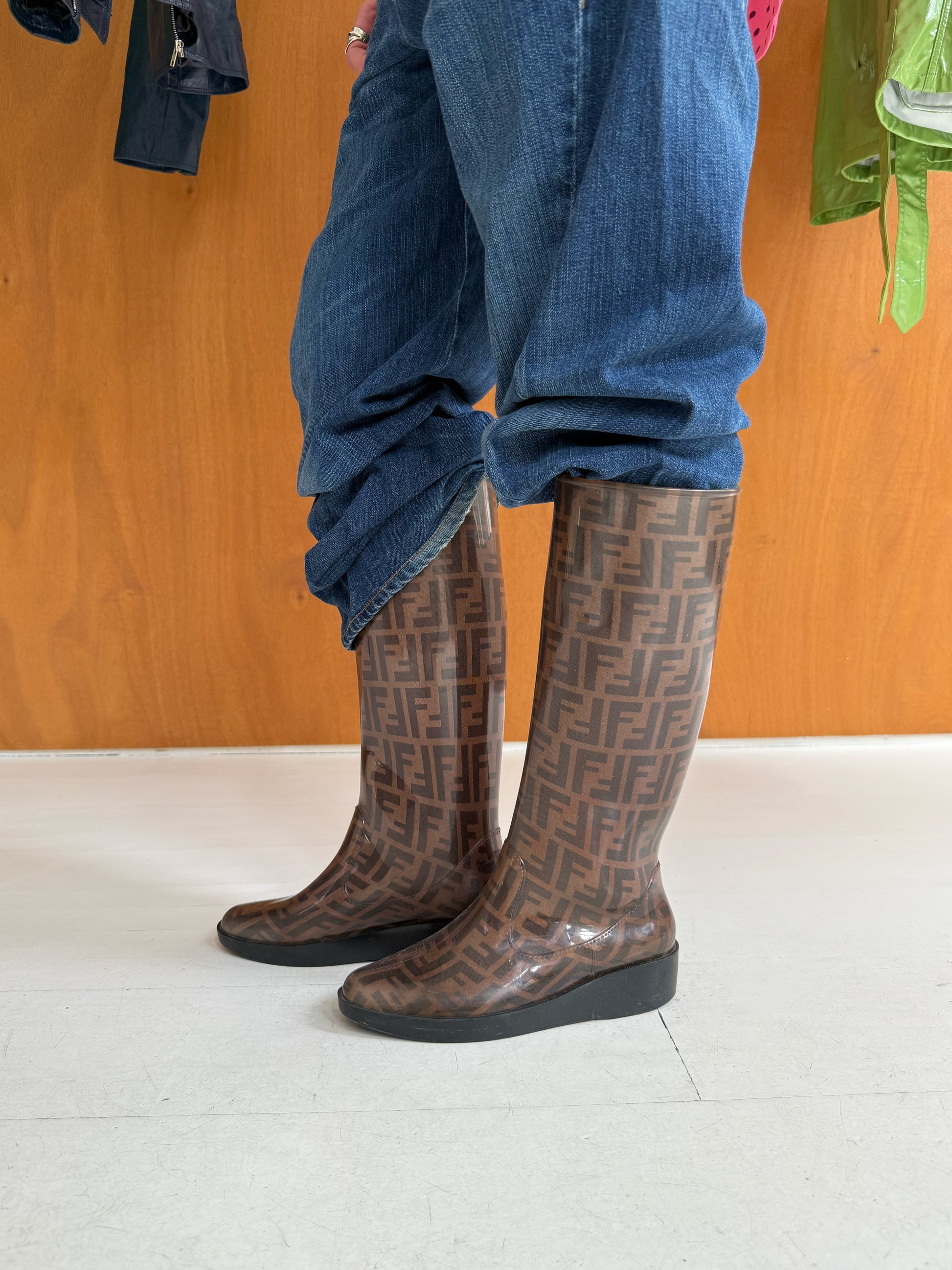 Fendi rain boots in brown. Size 39/40. Heel to toe: 26cm. Height: 41cm.