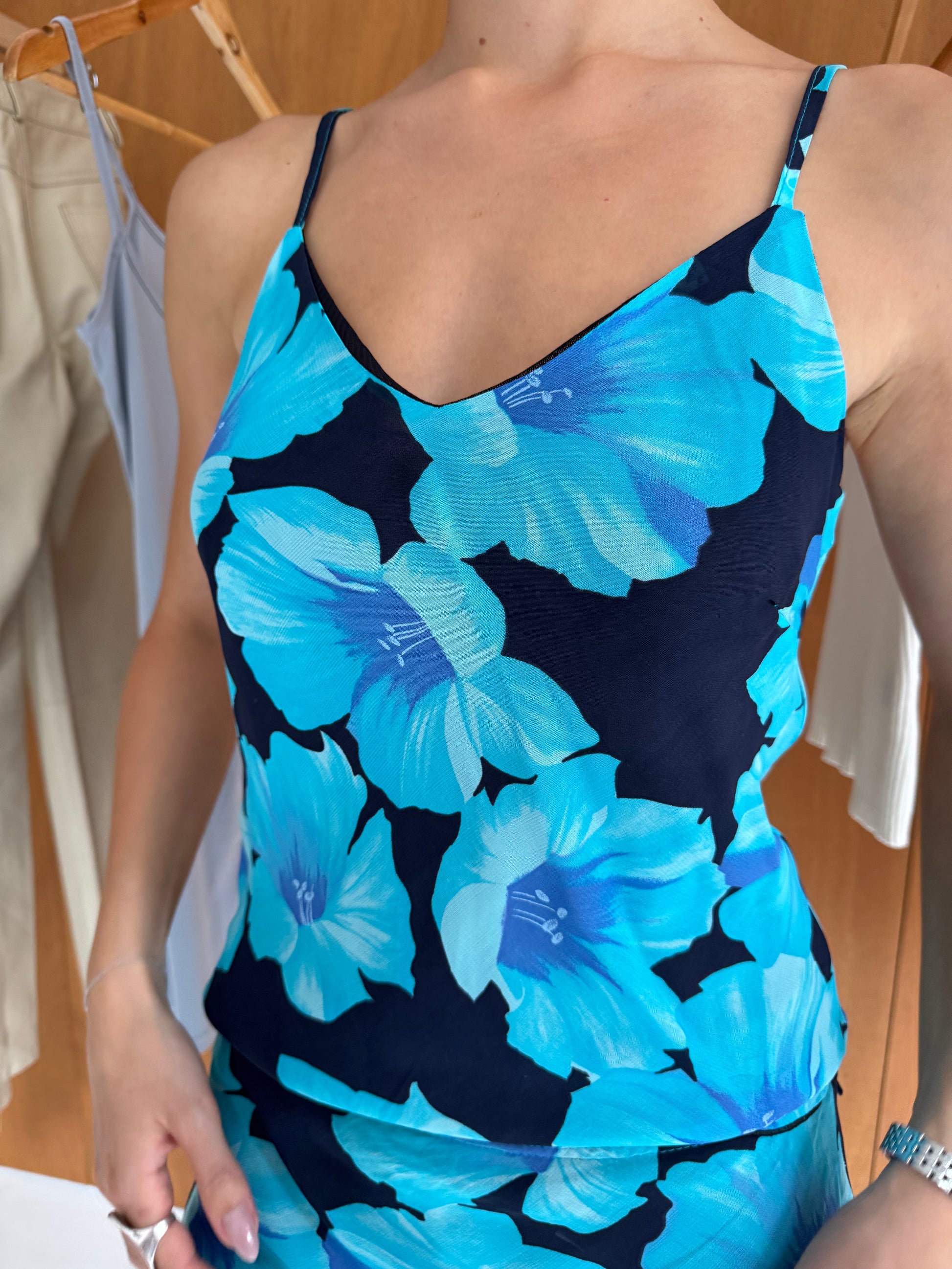 Floral skirt and tank top set in turquoise and black. Fits sizes XS-S.