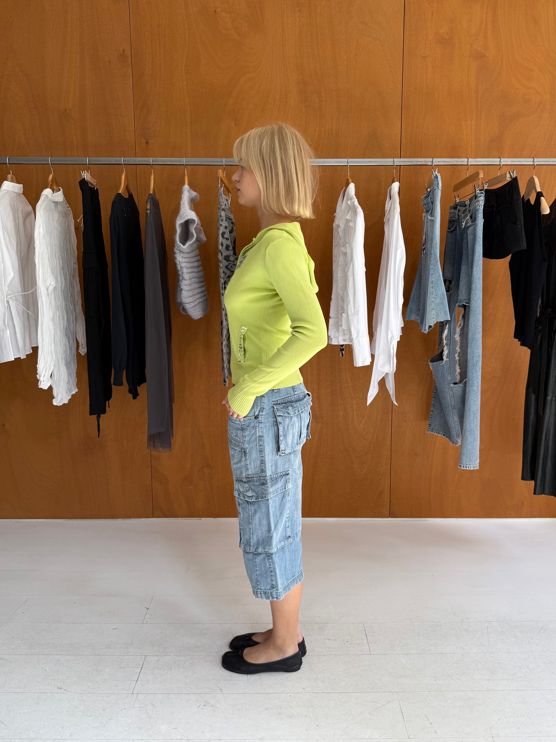 Hooded vest in green with silver sequin details. Fits sizes XS-M.