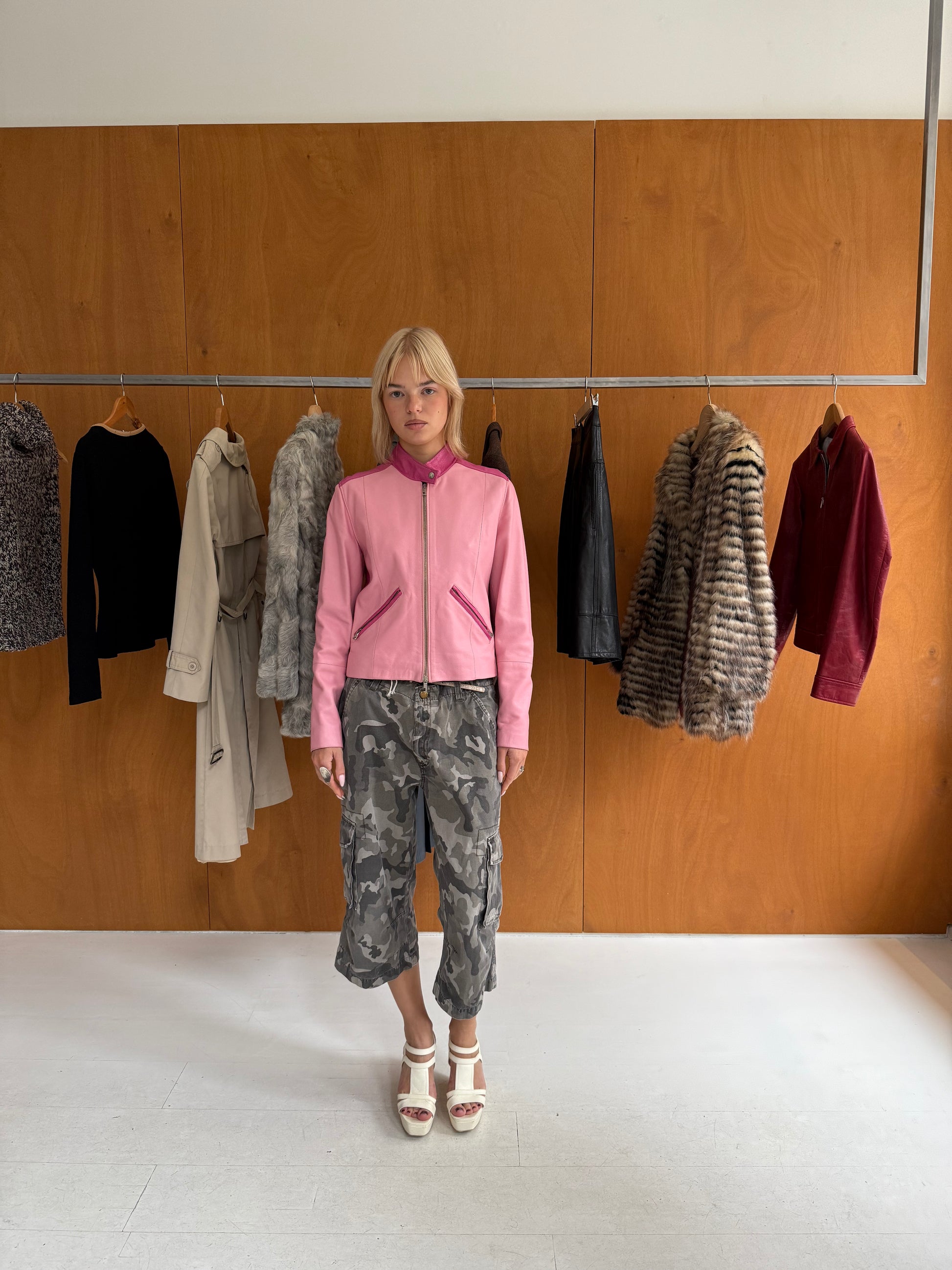 Leather jacket in dark & light pink. Fits sizes XS-M.