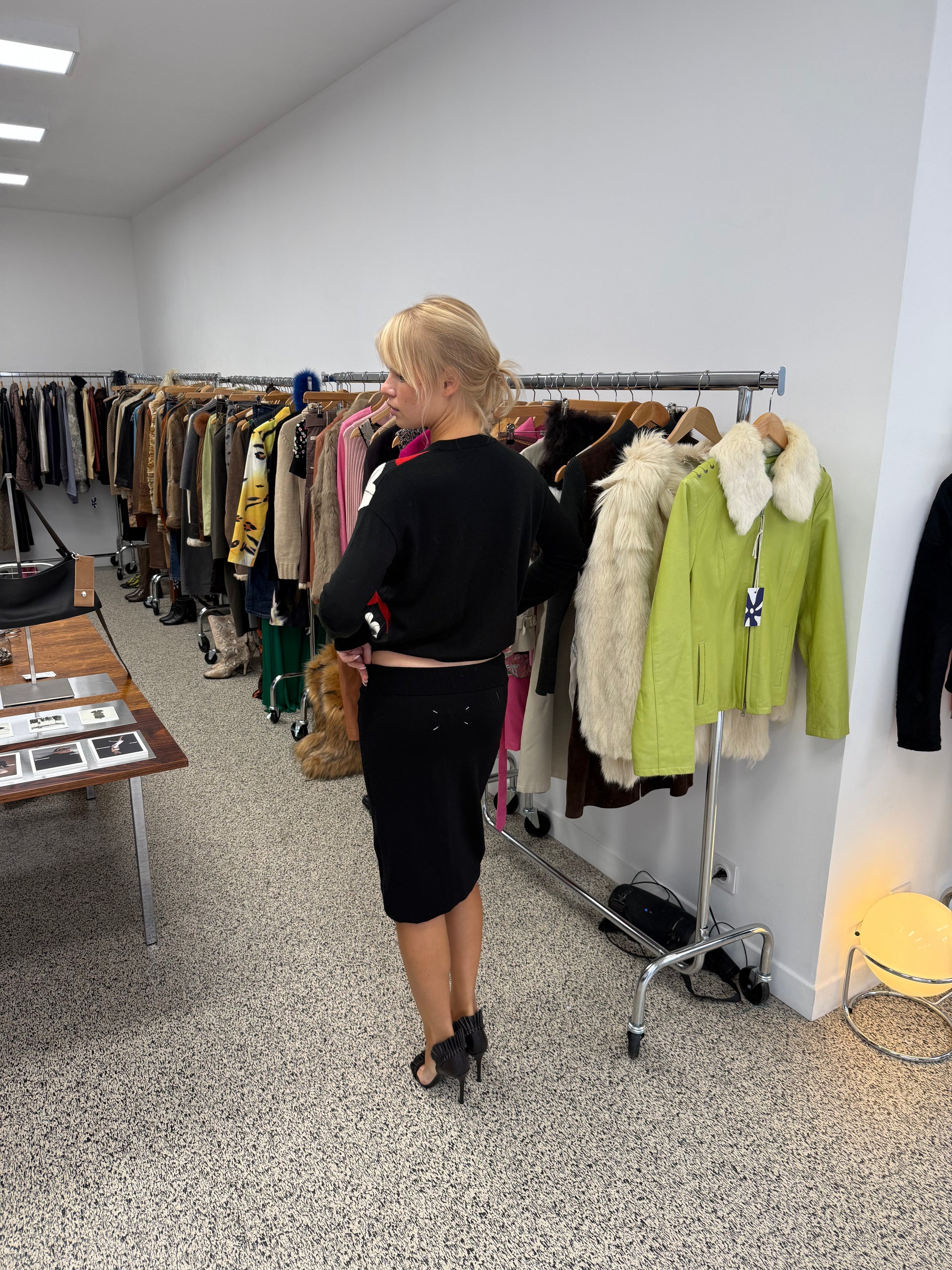 Maison Margiela midi skirt in black. Fits sizes S-M, has some stretch.