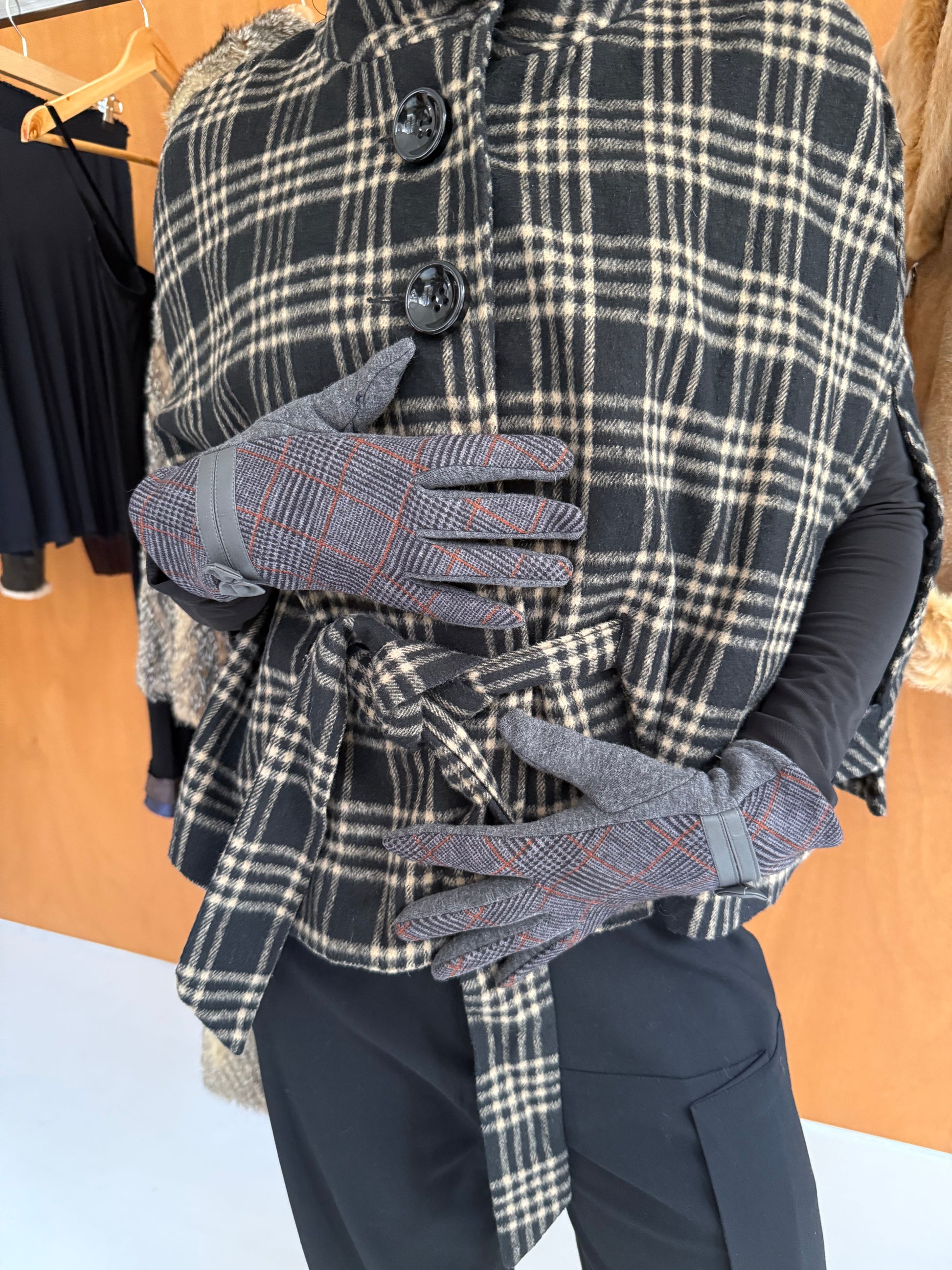 Plaid gloves in grey & orange with bow detail. New with tag.