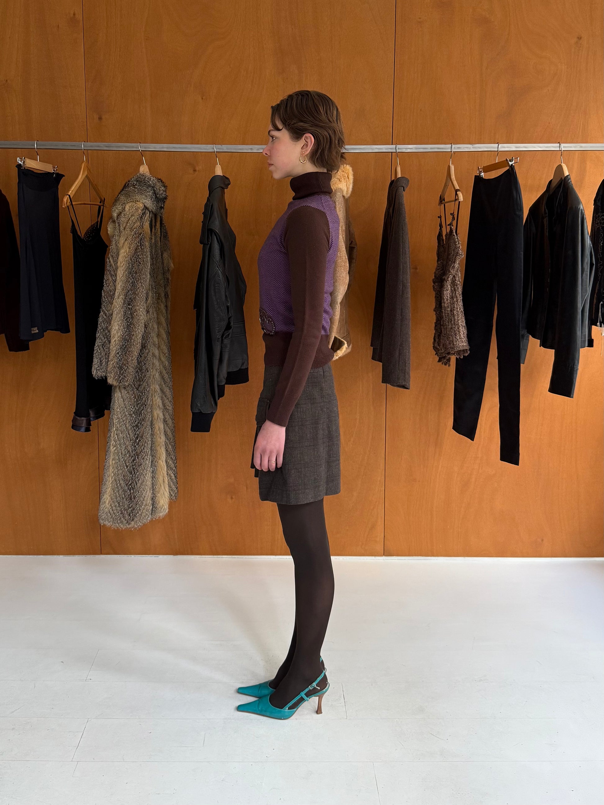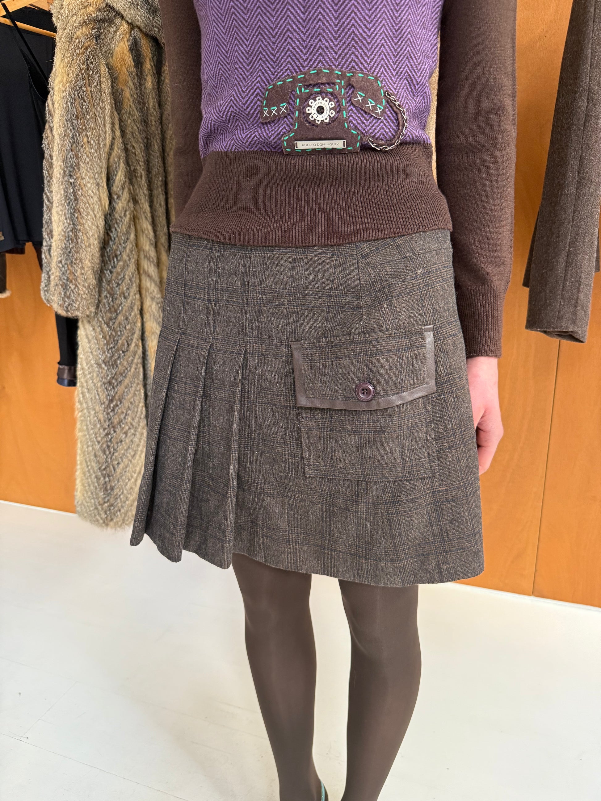 Plaid skirt in brown. Fits sizes S-M. W 39cm L 40cm.