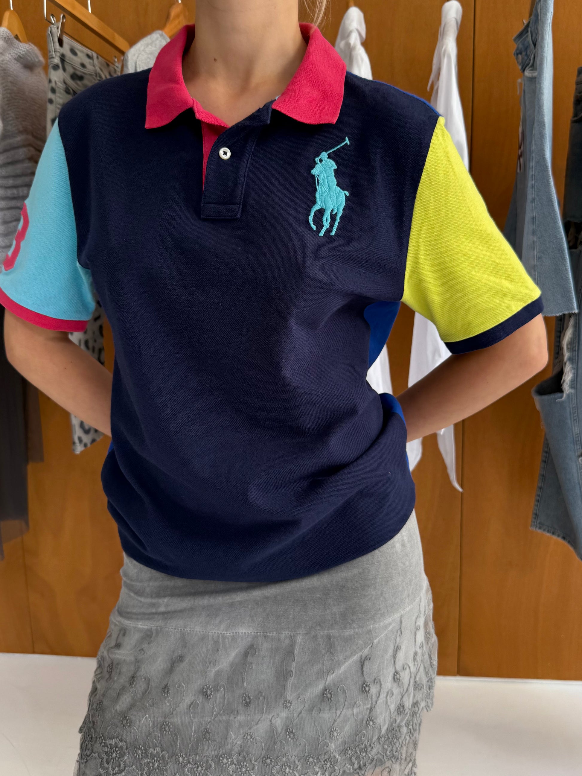 Ralph Lauren polo shirt in navy, pink, blue & yellow. Fits sizes S-L.