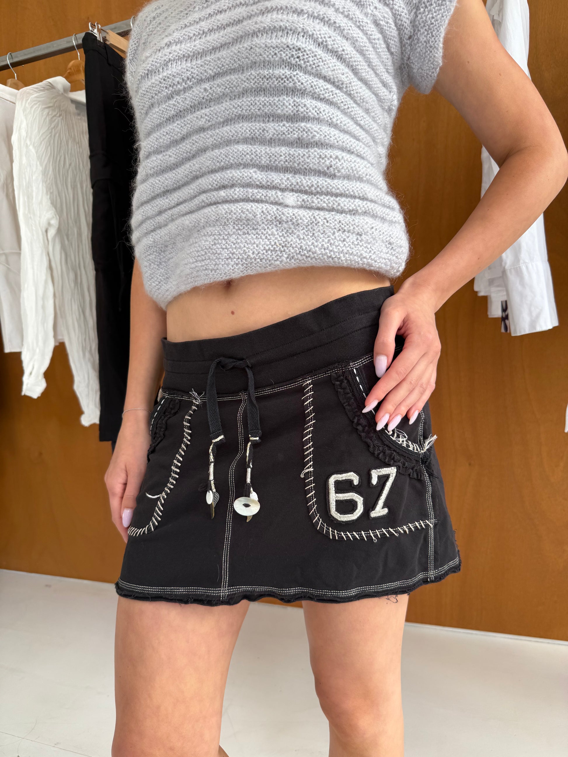Ralph Lauren print mini skirt in black. Fits sizes S-M.