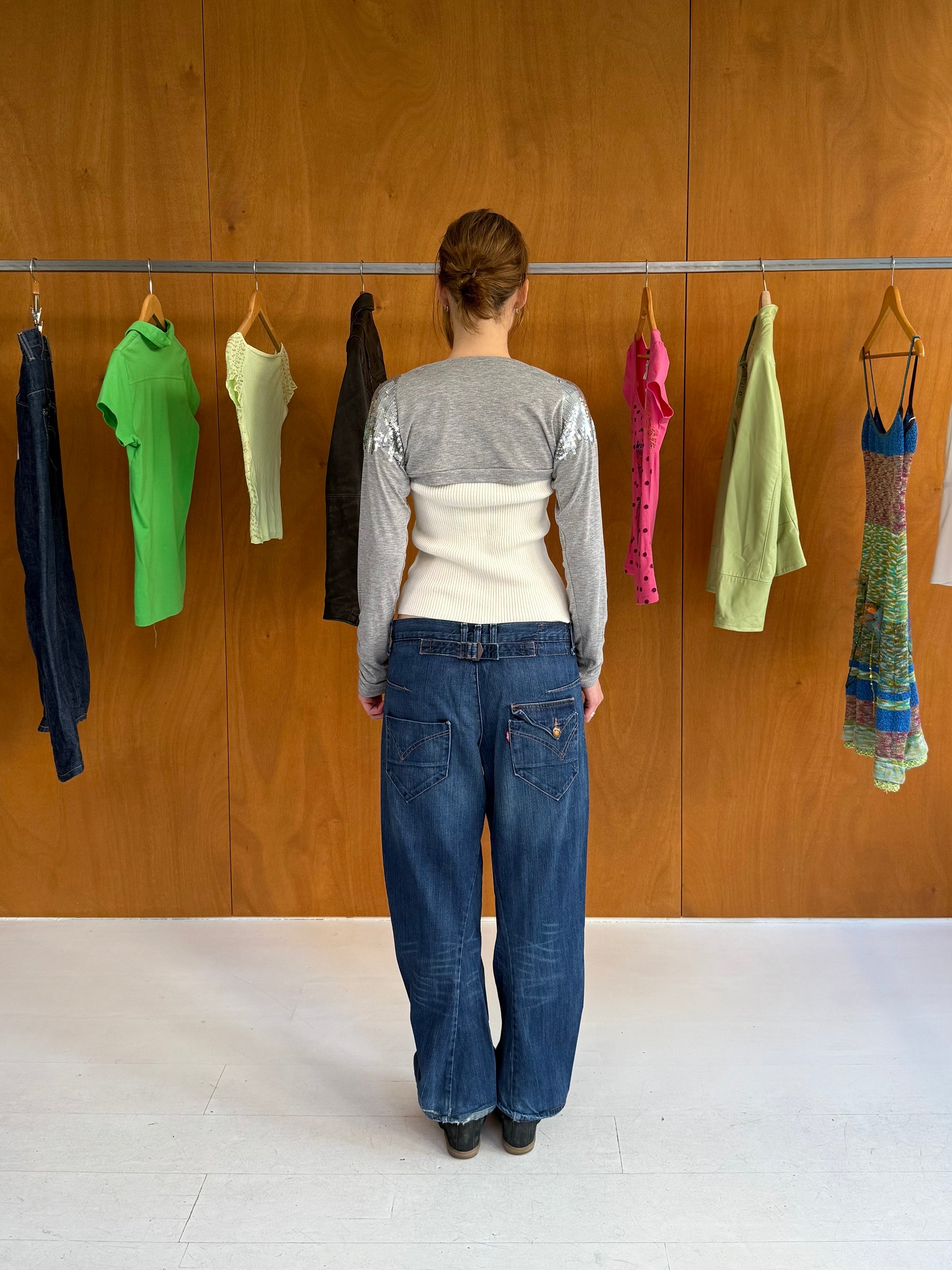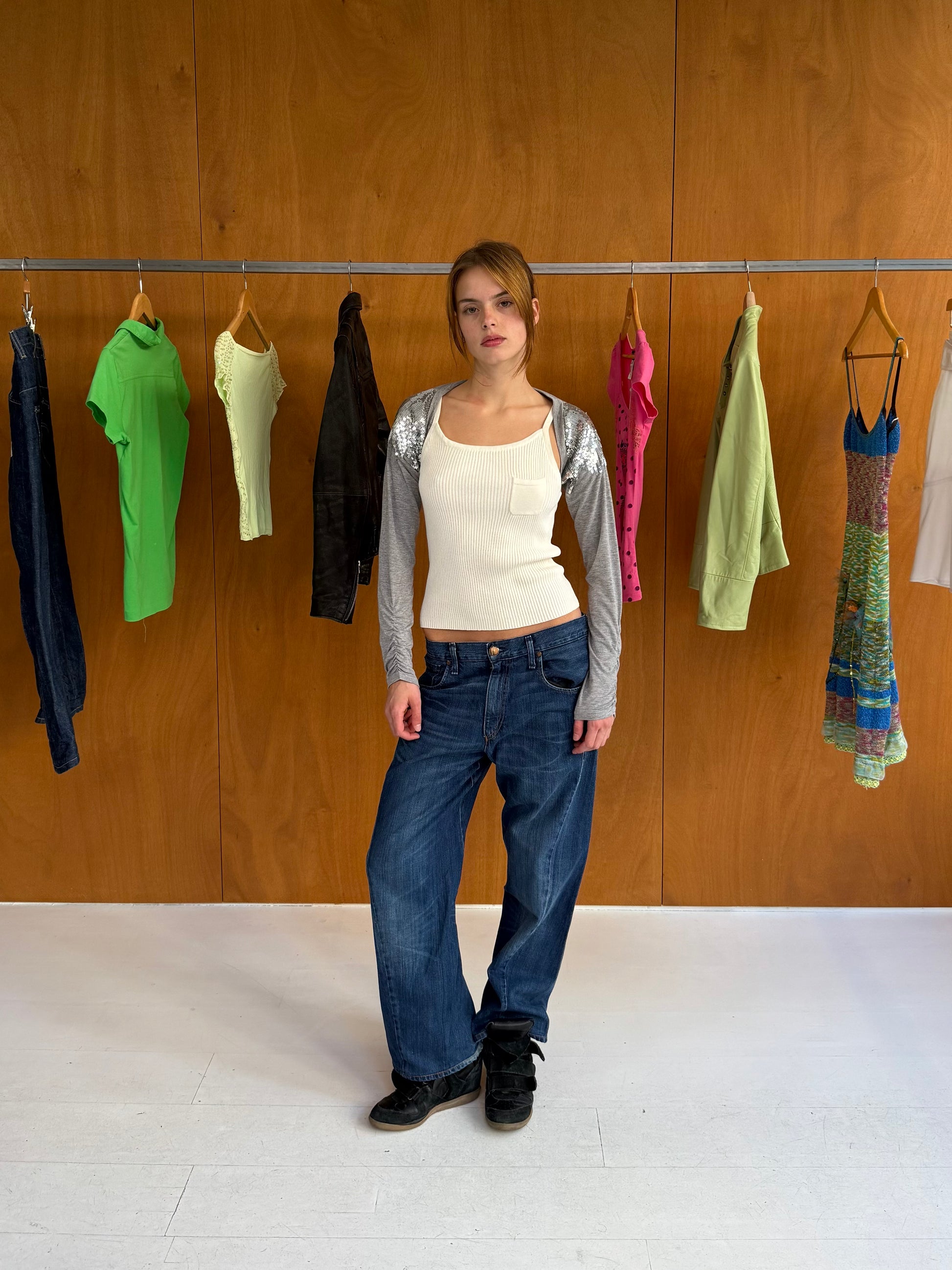 Rib tanktop with pocket in cream. Fits sizes XS-S.